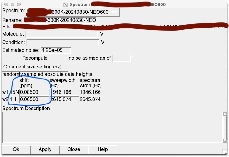 Note, values below are opposite signs ( + to – or – to +). I.e. TopSpin adds -72.12 Hz for NEO600 1H frequency at 295K, but Poky will add 0.12 ppm, not -0.12 ppm.
