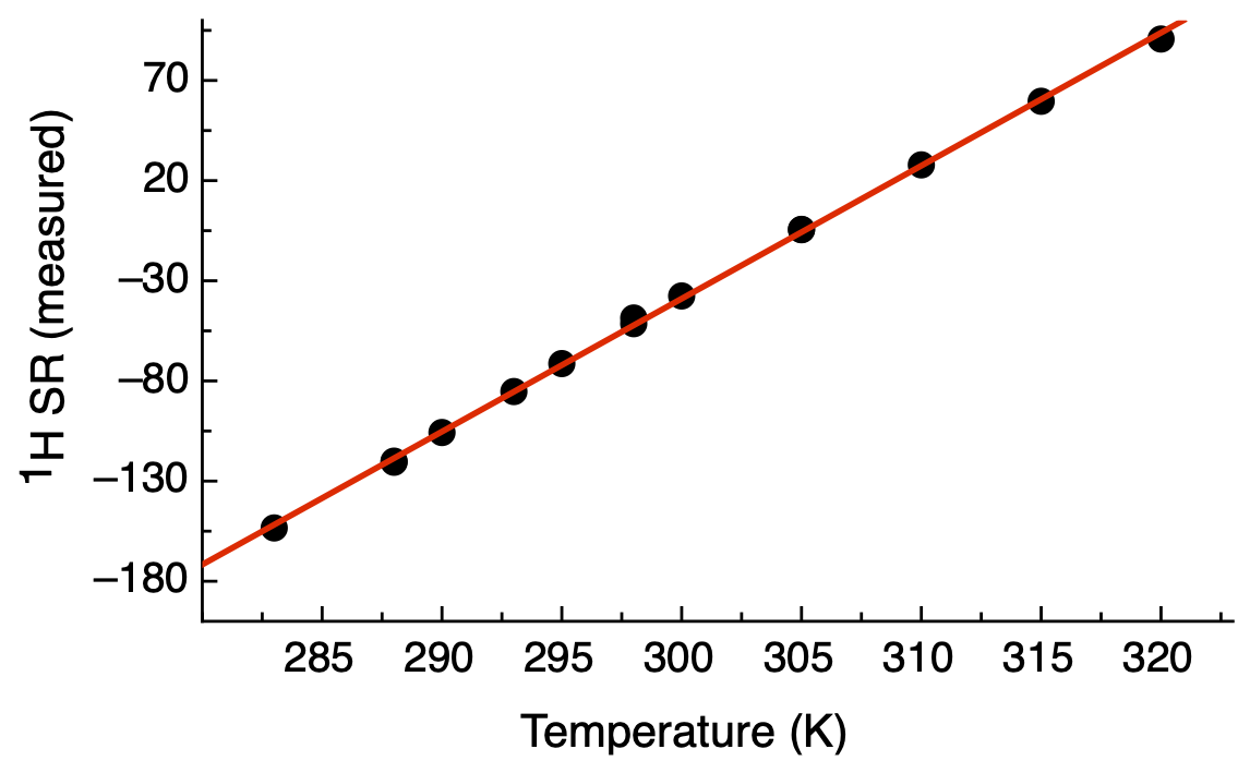 Where X and Y are temperature (Kelvin) and the calibrated values of 1H in Hertz.